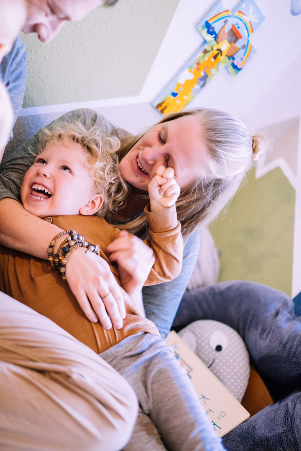 Zu Besuch bei einer 4-köpfigen Familie im Trubel zwischen Spielen, Stillen, Malen und Windeln wechseln.